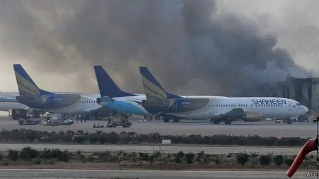 පාකිස්තානයේ කරච්චි නුවර ජින්නා අන්තර්ජාතික ගුවන් තොටුපළට එල්ල කරන ලද ප්රහාරයේ වගකීම පාකිස්තාන තාලිබාන් සංවිධානය භාර ගෙන තිබේ.