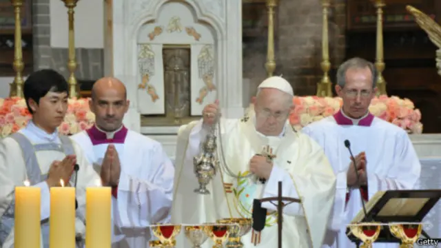රෝමානු කතෝලික සභාවේ ප්රධානී ෆ්රැන්සිස් පාප් වහන්සේ දකුණු කොරියාවේ සියාවුල් අගනුවරදී කොරියානු අර්ධද්වීපයේ සාමය හා සමාදානය වෙනුවෙන් විශේෂ දේව මෙහෙයක් පැවැත් වූහ.