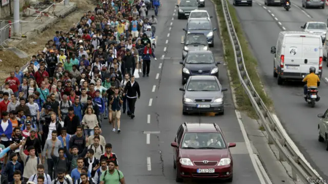 හංගේරියාවේ සිට බීබීසී යේ ගැවින් ලී කියා සිටින්නේ බුඩාෆෙස්ට් දුම්රිය පොළේ සිට ඔස්ට්රියානු දේශසීමාව කරා ගමන් කරමින් සිටින සරණාගතයන් 1000 ක් පමණ මේ වන විට සැතපුම් 10 ක් පමණ දුරක් ගමන් කර ඇති බවයි.