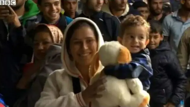 ඔස්ට්රියාවේ සිට දුම්රියෙන් ජර්මනියේ මියුනික් නගරයට පැමිණි සරණාගතයන් අත්පොළසන් මැද පිළිගත් අන්දම බර්ලින් නුවර සිටින බීබීසී වාර්තාකරු ජෙනී හිල් දුටුවා ය.