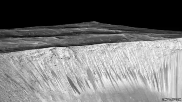 අඟහරු ග්රහයා මතුපිට පවතින අගාධ තුළට නෙරා යන ඉරි වැනි සලකුණු, ලවණමය දියර ගලා යාම නිසා ඇති වුනු සලකුණු බවයි නාසා විද්යාඥයන් පවසන්නේ.