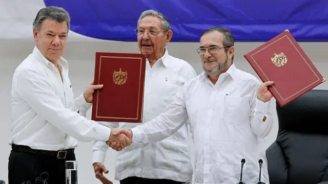 Madaxweynaha dalka Kolombiya Juan Manuel Santos ayaa ku dhawaaqay heshiis hor leh oo labada dhinac ay saxiixi doonaan todobadkan , waxaana inta kaddib loo gudbin doona aqalka sare ee barlamaanka ee dalkaasi si loo meel mariyo heshiskani .Tallabadaasina waxaa walaac ka muujiyay mucaaradka dalka oo iyagu ku edeeyay Madaxweyne Santoos inuu ka tallaabsaday go'aanka shacabka.