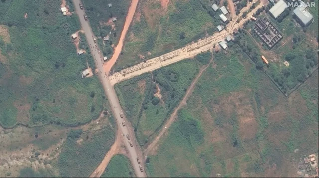 Lix kiiloomitir oo dhanka kale ka xigtay magaalada Shiraro waxaa shirkadda dayax-gacmeedyada ee Maxar uu sawiradeedu qabtay 45 gaari oo saf dheer ku jira. Waxaa gaadiidkaas ka dhex muuqda tiro basas ah waxayna u socdaan magaalada.
