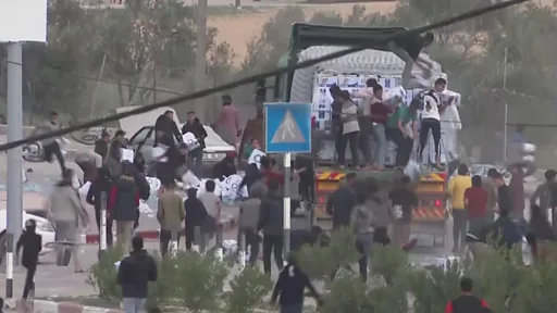 Sawirro Axaddii laga soo qaaday baraha bulshada ayaa muujinayay dadka reer Gaza oo fuulaya gawaarida xamuulka qaada ee gargaarka.
