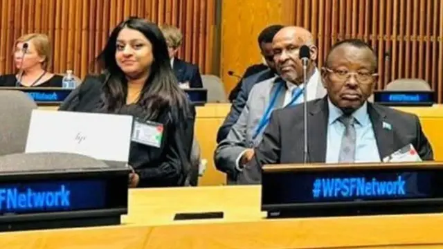 Sarkaal sare oo ka tirsan shaqaalaha rayidka ah ayaa BBC-da u sheegay in labo haween ah ay sidoo kale ka mid ahaayeen wafdigii Soomaaliya ee afarta xubnood ka koobnaa ee ka qeyb galay munaasabada oo looga hadlayay arrimaha Haweenka, Nabadda iyo Amniga taas oo ka dhacaysay New York, balse sawirka uu wasiirka barta bulshada ku wadaagay kama aysan muuqan labada haween.