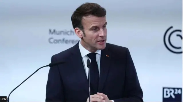 Macron ayaa khudbaddiisa Munich ku sheegay in haatan aan la joogin xilli lala xaajoodo xukuumadda Moscow, balse wadahadal nabadeed uu yahay xalka ugu dambeeya ee laga gaari karo dagaalka Ukraine.