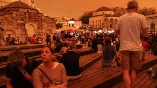 Caasimada dalka Giriiga ee Athens ayaa noqotay midabka jaalle xigfeenka ah ee oranjaha, kadib markii ay qarxeen daruuro boor ah oo ka soo kacayay dhinaca saxaraha.