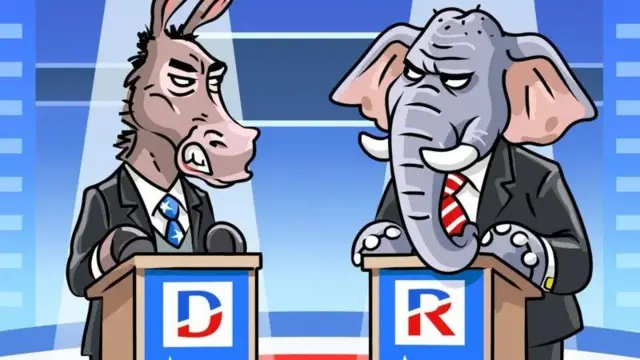 Xuddunta siyaasadda Maraykanka ayaa lagu arkaa inay ku hardamaan maroodiga xisbiga Jamhuuriga iyo dameerka xisbiga dimoqaraadiga, kuwaasoo astaamahooda ay xisbiyada ay u taagan yihiin la arko.