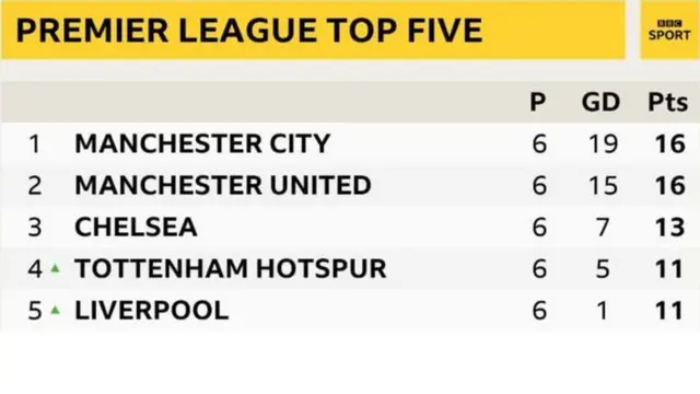 Chelsea ahaa ku xigta oo leh 13 dhibcood. Halka Tottenham ay wadato 11 dhibcood
