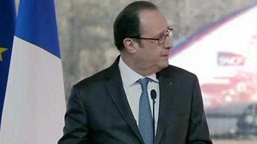 Hollande ka hadlayay munaasabad lagu furayay goob tareen oo cusub markii uu xabbadda maqlay. xoogaa ayuu hakiyay khudbadda, laakiin wararku waxay sheegayaan in uusan argagax dhicin.