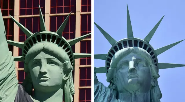 Halkii ay ka isticmaali lahaayeen sawirka taaladda Liberty ee New York ee asalka ah, ayay wakaalada isticmaashay sawirka taallo taas laga luunjeexay oo laga taagay magaalada Las Vegas.