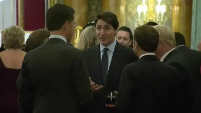 Muuqaalkan gaaban oo lasoo galiyay barta Twitter-ka ee warbaahinta Canada ee loo yaqaanno CBS ayaa muujinayay Mr Trudeau oo la sheekeysanaya koox hoggaamiyeyaal ah, oo ay ka mid ahaayeen Mr Johnson, Mr Macron, Ra'iisul Wasaaraha Netherlands Mark Rutte iyo gabadha ay dhashay boqoradda Ingiriiska Princess Anne, iyagoo markaas ku sugnaa Qasriga Buckingham.