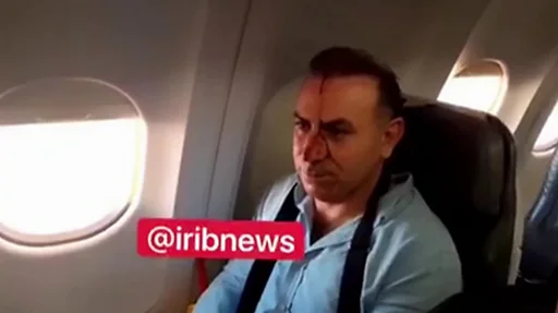 Muuqaal ay shaacisay Irib ayaa muujinaya hal diyaarad oo laga arkayo daaqadda diyaaradda Iiraan iyo mid ka mid ah rakaabka oo uu wajigiisa dhiig ku yaallo.