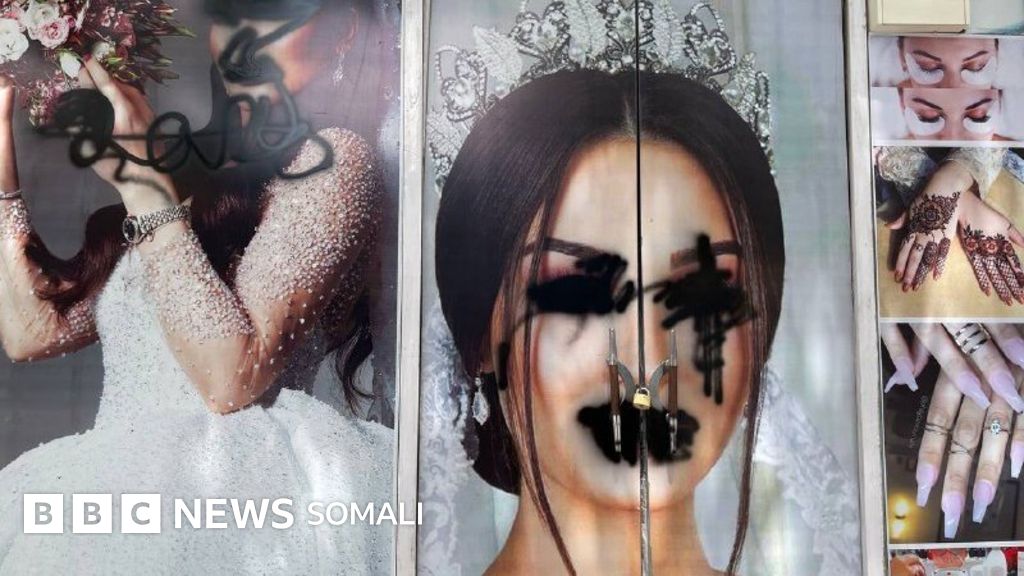 Maalintii ay Taalibaan la wareegeen gacan ku heynta caasimadda Afqaanistaan ee Kabul, ayaa boorar xayeysiisyo oo ku dhagganaa bannaanka qolalka quruxda kuwaas oo muujinayay dumar xirnaa dharka aroosyada ayaa la mariyay rinji madow.