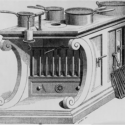 Jonathan Freedland presents the series that looks for the past behind the present. He examines the parallels between today's celebrity chefs with social agendas and the 19th century chef Alexis Soyer, who became a household name and captured the British public imagination with his revolutionary approach to cooking and eating. Image: An engraving by Laing of Soyer's Modern Housewife's Kitchen Apparatus, circa 1850. The invention of French chef Alexis Soyer, it boasts an open roasting fire, a hot water boiler, a baking oven, a broiling stone and a hot plate.