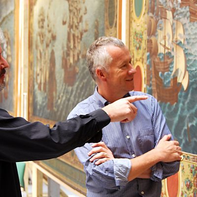 16 October is the 175th anniversary of the Houses of Parliament burning down - and with it, the complete destruction of a set of 17th-century tapestries depicting the defeat of the Armada. However, an engraving of the works survived. John Wilson visits curator Malcolm Hay at the Palace of Westminster and travels to Wrest Park, the country house in Bedfordshire where, for the past two years, artist Anthony Oakshett has been leading a team painstakingly recreating six tapestries - as paintings - prior to their being reinstalled in the House Of Lords in 2010. As co-founder of Joy Division, and later New Order, musician Peter Hook found global success, with New Order's single Blue Monday becoming the best selling 12-inch single of all time. But the profits from these record sales were largely poured into the running of a nightclub in his home-town of Manchester. The Hacienda changed the face of Manchester's music scene forever, but spiralling debts forced it to close in 1997. Peter Hook reflects on the Hacienda's legacy, its immortalisation on film, and why Bernard Manning was the first act to perform there. American artist John Baldessari, who pioneered conceptual art in the 1960s, talks about how he was inspired by a group of teenage delinquents, what place words have in his art and why he cremated many of his early works. Trevor Griffiths's play Comedians first appeared in 1975, and was soon being described as, 'the best play of the 1970s'. A new production has just opened, starring Keith Allen, Reece Shearsmith, Mark Benton and David Dawson; comic Natalie Haynes and John Wilson assess its continuing relevance.