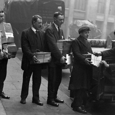 Jonathan Freedland compares the present public spending review with the 'Geddes Axe' of 1921-22. In the early 1920s, in the face of mounting economic and political pressure, Prime Minister David Lloyd George committed the government to massive public spending cuts. Then as now it was a coalition government faced with the challenge of driving through savings. Lloyd George appointed the Geddes Committee to decide where the axe should fall. Jonathan and guests draw on the lessons of the early 20s to debate the difficulties of delivering economies in public spending and the potential political fallout. Producer: Laurence Grissell. Image: Men carrying the Geddes Report on national expenditure on its arrival at HM Stationery Office, February 1922.