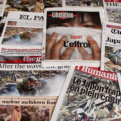 After news of the devastating earthquake in Japan broke, broadcasters were under pressure to get correspondents to the disaster area to report on developments. But with several presenters now in the region, have news outlets gone overboard? To discuss how decisions about the logistics were reached, Steve is joined by BBC head of newsgathering Fran Unsworth and ITV head of foreign news Tim Singleton. The Independent's spin off paper, the i, publishes its 100th edition today. After a high profile advertising campaign, the number of readers has shot up. Simon Kelner, the editor of both papers, joins Steve Hewlett to discuss whether the current figures are sustainable and what the i's success means for The Independent. There are growing concerns that plans for a "three strikes" rule to tackle internet piracy, which would mean persistent offenders would get their connections cut off, have come to a halt. The Telegraph's Emma Barnett and Jeff Taylor of the BPI, discuss the music industry's worries about piracy and the reasons for the delay. The producer is Simon Tillotson.
