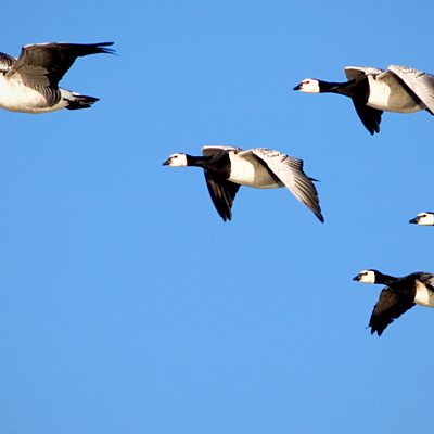 The island of Islay is the most southerly island of the Southern Hebrides and as such has an important role to play in Scottish birdlife. Also known as the Queen of the Hebrides this small island is, in winter, host to thousands of winter migrant birds as they escape the harsh Arctic weather. Some birds use the island as a stop over point to rest and feed before heading away on migration, other species, such as barnacle geese stay the entire winter, leaving in the spring. This weeks Living World, finds Michael Scott leaving the Scottish mainland to travel the two and a half hour journey by ferry to meet an old friend of his Malcolm Ogilvie. Malcolm has been studying the geese of the island for nearly 50 years and has been resident here for half that time. But Islay has so much more birdlife to offer than geese; indeed in the autumn and spring keen birdwatchers come to the island to attempt a remarkable feat, to see over 100 different species of birds on the island in a single day. Michael and Malcolm visit over the winter and therefore aim for lower numbers of birds to be seen during this visit, by concentrating on one small but beautiful area of Islay, Loch Gruinart on the northern coast of the island. Beginning at the head of Gruinart, huge numbers of barnacle geese can be seen feeding on the flooded fields below, geese that move and erupt into restless flight in ever increasing numbers, a spectacle that is both beautiful and awesome to behold. At the head of the Loch is Ardnave Point where different species of birds can be seen both on a small isolated lochan and at the spectacular mouth of the Loch, framed by the islands of Jura and Mull beyond. However one of the real jewel species of these islands is a rare member of the crow family, the chough. Islay holds a sixth of the UK's chough population and Michael is keen to see these birds on this visit as he scans the horizon from a windswept dune system overlooking the sea. Is that their call being carried along by the buffeting wind on the ridge? Yes, here they come, these acrobatic specialists, right on cue.