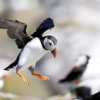 Just 2 miles off the Northumberland coast, the numerous Farne Islands, viewed from the mainland resemble a dark pod of whales in the glistening North Sea. For Living World this week, Paul Evans is on a quest to learn more about one of our favourite seabirds, the puffin. Catching an early boat, he arrives on Inner Farne to all the sounds and smells of a seabird colony at the height of the breeding season. Here he is met by David Steele, a warden on these islands for 11 years. To begin their adventure, they must head towards the Pele tower, which means that David and Paul have to negotiate the dive bombing attacks of another breeding bird on the island, the Arctic tern. Avoiding razor sharp bills is not for the faint hearted, the terns though are just protecting their eggs and chicks which are all around Paul's feet as he walks. Scrambling to the top of the Pele tower this allows not only a respite from the bombarding terns but a panoramic view of the island beyond the adult puffins relaxing on the edge of the tower. Paul encounters a wandering puffin in the courtyard allowing an opportunistic, if painful, close up encounter with this charismatic member of the auk family. But where do these birds breed? David leads us over to the grassy slopes near the sea cliffs where, with his arm all the way down a burrow, he searches for the single downy chick. Blinking in the summer sun, this chick has never seen daylight before. But in just a few short weeks on a dark night, it will leave the safety of its burrow for ever. With no assistance from its parents, it will scramble across the island and swim off into the great unknown of the North Sea for three solitary years, before returning once more to land to breed as an adult.
