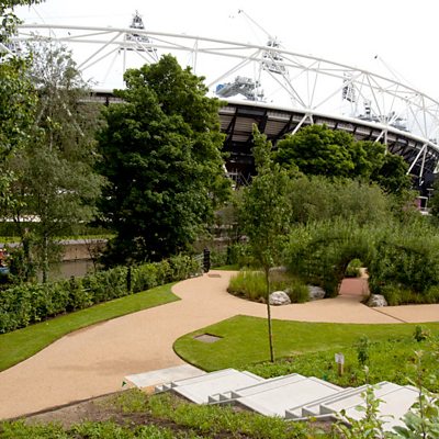 Eric Robson and the panel meet a London audience at the Olympic Aquatic Centre, Stratford. We revisit the Olympic Park one final time before the doors are thrown open to the public. Questions answered in the programme: How can we encourage people to grow plants in their front gardens instead of concreting them over? What manure should I use for the best homegrown tomatoes? What tree will establish quickly and resist the harsh conditions on the west coast of Ireland? Suggestions included: Fir, Native Hawthorn, Birch, Rowan, Poplar I've got a dwarf spruce, dying from the inside out, what can I do? How can I maximise the crop yield of vegetables from a 6 meter square plot? Suggestions included: French beans, courgettes, cut and come again lettuce, parsley, fruit trees, rhubarb, sweetcorn. Planting suggestions for large tubs, brick planters, and baskets to along a seaside town high street. Suggestions included: Perennial seed mixes, grasses, Steeper Arundinacio, Wolvalarian, Sentranthus, Eupatorium Chocolate, Calendula, Suggestions for plants that can be planted now to flower in the Olympic colours in a month's time. Suggestions included: Annual poppies - 'Ladybird', Nigella, Pelargonium (cuttings) In the Olympic year, what could I plant in 9.85 seconds? Produced by Howard Shannon A Somethin' Else production for BBC Radio 4.