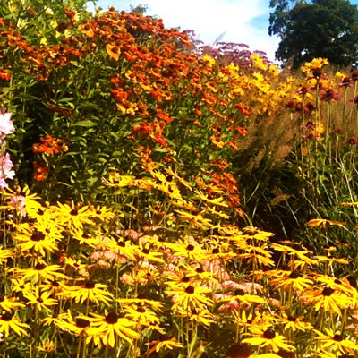 Peter Gibbs chairs a horticultural debate with Anne Swithinbank, Matthew Wilson and Bunny Guinness at Ness Botanic Gardens, South Wirral. In addition, Toby Buckland explores the plant-hunting history of Ness Botanic Gardens. Produced by Howard Shannon. A Somethin' Else Production for BBC Radio 4 Questions answered in the programme: Q. What prize produce would the panel be proud enough to enter in a horticultural show? A. The panel's kale, runner beans and asparagus have all done well despite the bad weather. Q. Should my dad give up his garden and grow crops, and how much would he need to be self-sufficient? A. John Seymour suggested that in 12sq metres of raised beds, you could feed one person for a whole year. A greenhouse would be recommended. Q. We have found ground-nesting bees in the border. Are they friends or foes? A. Give them a wide berth, and watch out for the vibrations from a lawnmower or a strimmer. Q. Could the panel recommended flowering herbaceous plants that remain upright, with unblemished petals, even after a period of wet weather? A. Mid-late summer flowering perennials, such as Echinacea, Rudbeckia or Agapanthus. Physostegia, Chelone and Phlox are also recommended. Q. Can the panel recommend plants and containers suitable for my life travelling around the country in my motor home. A. Keep some houseplants such as Lilies in pots, Streptocarpus or Begonias (Begonia Corallina). Geranium Rozanne also does well in a container. Alternatively you have a trailer transporting a portable cold frame! Q. Is it a good idea to scarify the lawn in autumn as well as spring? A. Autumn is the best time to scarify. Q. How long can you keep dahlia tubers going for? Mine are losing their vigor after seven years. A. They can lose their vigor as a result of the weather when planted out in the wet. However, seven years is a good innings! Q. When should I prune my mature fruit trees? A. You shouldn't prune plums after august, as there is a higher chance of them getting silver leaf. They should be pruned in the summer. You can prune pears and apples in the winter, and that is the best time to do them. Q. Will the nut of a curly hazel become a curly hazel if planted? A. No. The tree is grafted and the nut will revert to type. Q. What is the planning distance of edible plants in a raised bed? A. Intercropping and catch cropping can be employed in a small bed. You can use things like the 'three sisters', with sweet corn, runner beans and courgette in the same area. Variable growth should be expected. Q. What would the panel recommend as an autumnal plant for a community-planting project using Wellington boots? A. Small Christmas trees. Stipa Tenuissima could be used to create an illusion of hair coming out of the boot. Sempervivum, the house leek, can be use to stud the Wellington down the sides.