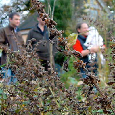 The GQT team is in Bishops Castle, Shropshire, for this week's programme. Eric Robson is joined by Chris Beardshaw, Pippa Greenwood and Matthew Wilson, plus special guest Nicholas Parsons as Gardeners' Question Time meets Just A Minute in aid of BBC Children in Need. Produced by Howard Shannon A Somethin' Else production for BBC Radio 4. This week's questions: Q. Would it be possible to keep a tender Jasmine outside over the winter, if it was covered in fleece? A. It will die if left outside, so it would be better to prune the jasmine down to a suitable size to be brought inside. If you want it to flower next year, you will need to leave some of this year's growth on the plant. Q. Could the panel advise on growing damsons, plums and apples on our smallholding? It is1250ft above sea level and with strong prevailing winds. A. Plant other species such as Euonymus, Birch or Willow, which could help create a shelterbelt. In addition, grow on very dwarf rootstocks and grow against the sides of any buildings or sheltered areas. Join your local fruit group, who will have a repository of knowledge of varieties that grow well locally. Q. What treatment can be used to prevent the gall midge ruining my Hemerocallis lilies? A. Promptly remove affected buds on a very regular basis. Q. Can the panel suggest some evergreen plants that will grow to about 3ft (though they can be clipped) and be happy living in pots at 600ft altitude and with a southwesterly aspect? A. With shelter, you could grow Artemisia Arborescens which has a distinctive smell, as do Helichrysum and Rosemary. Buxus Sempervirens and Buxus Rotundifolia (the cultivar 'Pylewell' is resistant to Box Blight) can be kept low, as can Taxus or other small topiarised Yews. The small-leaved forms of Ilex, such as Ilex Crenata, could be used. Japonicus Aureopictus is also suggested. Q. Why can I not grow miniature cucumbers in large pots in an unheated greenhouse? The initial crop is prolific, but subsequent baby cucumbers turn yellow. A. Try not to let temperatures fluctuate too much. Also, a small cucumber will need at least 2 litres of water a day in full growth. Q. I would like to move my 12-year-old, 3ft tall monkey puzzle tree. Would it be OK to do this? A. At this size and age there should be no problem, but remember to give it plenty of space, as they will get very big. Move it with as much of a root ball as possible - a foot or so either side of the trunk - and replant and water straight away. Gardeners' Question Time Meets Just A Minute For plenty more hesitation, deviation or repetition, you can listen to an extended version of the GQT recording with Nicholas Parsons from Just A Minute, all in aid of BBC Children in Need, on the programme page here: http://www.bbc.co.uk/programmes/b01ntlsf There are lots of ways to donate to BBC Children in Need, details of which can be found here: http://www.bbc.co.uk/programmes/b008dk4b/features/cin-donate Ash Dieback Disease Ash dieback is a serious disease caused by a fungus called Chalara fraxinea. The disease causes leaf loss and crown dieback in affected trees and can lead to tree death. Chalara Fraxinia is considered to be so serious a threat that the government's COBRA emergencies committee met to discuss it. The Forestry Commission would like the public to help spot affected ash trees and to report them. The Commission's website has useful photos and a video guide on how to spot the symptoms and how to report suspected cases. You can find this here: www.forestry.gov.uk/chalara There is also a smart-phone app that has been developed by the University of East Anglia that shows symptoms and allows suspected cases to be reported. More information on this app can be found at: http://ashtag.org/ Affected trees can be reported using the following contacts: In England and Wales, on the Chalara helpline: 08459 33 55 77 or email: [email protected] In Scotland, to Forestry Commission Scotland: 0131 314 6156 or email: [email protected] The Forestry Commission are appealing for everyone to think about bio security - in other words the possibility that fungus could be spread on footwear, clothing, gardening tools, even our pets - and, if out and about in gardens, parklands or countryside, to think about the need to clean anything that might have come in contact with the ground or the trees themselves before venturing out again.