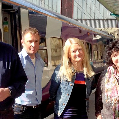 Eric Robson hosts a very special show recorded onboard the Settle-Carlisle railway. Taking to the tracks to answer gardening questions are experts Chris Beardshaw, Bunny Guinness and Pippa Greenwood. Produced by Howard Shannon A Somethin' Else Production for BBC Radio 4. Q. The stems of my Sweet Peas decrease in length as the plant itself increases in height. How can long stems be encouraged throughout the growing season? A. Pick more and ensure the plants are well tended, well watered and well fed. By picking the flowers just as the colour is showing in the bud, this helps encourage the plant to keep producing new flowers. By removing the little tendrils from the plant, more energy can be expended in growing flowers. Q. What herbs are recommended for a 17m by 26m (55ft by 85ft) open, sunny site on clay soil? The herbs would need to withstand occasional trampling, occasional cutting and possible hens. Could the herbs be spot planted in grass or would the turf need to be stripped back? A. Opt for herbs that are used to growing in grassland conditions, such as Oregano or low-growing native Thyme. Mint (for example, the variety Mentha Requienii) will do well in a damper area on the site. Q. Would it be advisable to alter the shape of a Victoria plum, trained as an espalier against a West-facing fence, to a fan-trained shape? A. In theory, the stone fruits such as plums and cherries do better when fan-trained, whilst rosaceae fruits such as apples and pears are better off trained horizontally in an espalier. Whilst the wood is still flexible, alter the angle of the wires, if possible, to be slightly sloped. Q. What can be done with the wet bulrushes once removed fro a pond? A. A decent piece of shredding equipment would be the best bet for breaking these down before composting them. The stems would also work as a good mulch for hedges or similar. Alternatively, if there are large quantities of bulrushes to tackle, there are aquatic mulch products available that can be laid across the bed of a pond in early spring before the bulrushes come up that will prevent the growth. Q. What would be good plants to showcase Yorkshire planting when the Tour de France passes through the county next year? A. Yellow Calendulas to represent the leader's jersey, green Hakonechloa to represent the sprinter's jersey and red-hearted, white-edged Petunias to represent the climber's jersey. Q. Can Hebes be pruned and if so, when? A. Hebes need to be regularly pruned, ideally annually in June when the plants are in growth. Pinch out the tips of the fresh growth and this will contain the plant. Q. Would the panel recommend air-drying of bare-rooted Pelargoniums for over-wintering. A. This is done in Switzerland where they have very cold winters. Lift the plants, clean off the roots and hang up to dry inside somewhere that won't get below freezing. Q. Is there anything that can be done to encourage butterflies, whilst still getting a decent crop of cabbages? A. Experiment with underplanting the cabbages, which - according to one particular theory - will prevent the butterfly from recognizing the cabbages by shape from the air. Q. A Honeysuckle planted in a southwest corner produced lots of foliage but no flowers. When moved into a tub in the northwest corner, it still produced no flowers and less foliage. A. Honeysuckle plants do well with slightly cooler roots, so the northwest corner would be better than the southwest corner, but the plant would do better planted out rather than in a tub. If possible, plant it out in this location. Honeysuckles are woodland species and are predetermined to have a strong young growth for the first few years. Stop pruning the plant and allow it to climb to 2-2.5m (6-8ft) in height before laying the climbers down horizontally to encourage flowering. Q. Would it be feasible to grow a trained or untrained Damson tree against a south-southwest-facing stone wall approx. 2m (6-7ft) tall. A. Compared to a freestanding tree, a tree in this position would not provide nearly such a good crop. Planting a freestanding tree, even in close proximity to the other fruit trees in the garden, would be preferable.