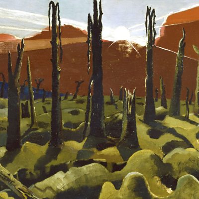 From Paul Nash paintings of blasted tree stumps in the first world war to today's commemorative planting: Paul Gough, Gabriel Hemery and Gail Ritchie join Samira Ahmed to explore woods in war and peacetime. The 100th anniversary of World War I is being marked by the planting of woods across the UK under the banner 'We Will Stand For Those Who Fell'; the trees' annual cycles of regeneration and recovery a metaphor for mourning, memorial and moving on. But throughout history wood has been one of the central commodities required for the machinery of war and World War 1 was no different. Historian James Taylor from the Imperial War Museum shows Samira some of the wooden artefacts which tell a story of wood's darker destructive side. For many though, the paintings of Paul Nash, with their scenes of smashed solitary tree stumps standing in empty battlefields are a multi-layered evocation of that war's futility, horror and waste. Samira takes a look at Paul Nash's 1918 painting 'We Are Making A New World' and talks to the artist, writer and Nash expert Paul Gough about this and other iconic Nash images and whether they have new messages for us today. They'll be joined by forest scientist Gabriel Hemery of the New Sylva Foundation to talk about the links between war and forest stock over time and Northern Irish artist Gail Ritchie whose current work explores some of Nash's themes in visual representations of present day conflicts and loss.