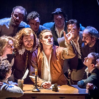 Chair of the judges A C Grayling and his fellow judge Erica Wagner join John Wilson to discuss the longlist for this years' Man Booker Prize. It's the first time that American novelists have been eligible for this prestigious award, and four of the listed writers are American. Billy Elliot writer Lee Hall talks about creating a stage play out of the Oscar winning film Shakespeare in Love. Hall also reveals that he's been busy reading Elton John's personal diaries in preparation for making a biopic of the singer. Tonight's Front Row features the first joint performance, in the studio, by two leading figures in world music. Dom Flemons - co-founder of the Carolina Chocolate Drops - and Martin Simpson - renowned acoustic and slide guitarist - have been researching and exploring how folk songs travelled back and forth between England and North America, changing shape as they journeyed. They retraced the fieldwork done by folklorist Cecil Sharp, a hundred years ago - and give John a musical demonstration of how an English dancehall ballad became a ragtime blues number. Image: Shakespeare In Love - Company with Tom Bateman as Will. Photo by Johan Persson (c) Disney.