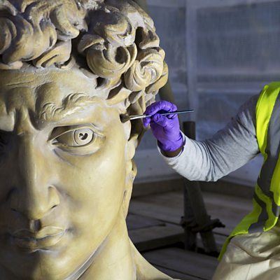 London's V+A Museum has just reopened the Weston Cast Court, which houses life-size plaster casts of statuary and artefacts from around Europe. It includes the museum's largest items, can it draw their largest crowds? Larry Gelbart's City of Angels is revived at London's Donmar Warehouse. A musical about the golden age of Hollywood, it garnered awards galore 25 years ago in its original run, will this production be a winner? Tim Burton's new film Big Eyes is about 1960s housewife Margaret Keane whose paintings of waifs with enormous dark eyes were wildly commercially successful, but her husband claimed all the glory until she decided to make a break for fame in her own right. Small Books: We look at 3 works of extremely short fiction. Hanif Kureishi, Haruki Murakami and AN Wilson all have stories to tell, that they feel are best-suited to new diminutive formats. The BBC has remade EF Benson's Mapp and Lucia in sumptuous style; is it a new classic?