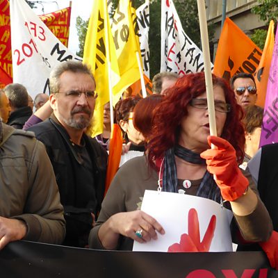 The cleaners whose protest has captured the imagination of those opposed to the harsh austerity programme in Greece. Mostly middle-aged or nearing retirement, they have refused to go quietly. The women have kept up a day and night vigil outside the Finance Ministry in Athens, taken the government to court and resisted attempts by the riot police to remove them by force. They've challenged representatives from the International Monetary Fund and raised their red rubber gloves in a clenched fist at the European Parliament. Some say they represent the plight of many women and the poorly paid, others that they are being manipulated by the left. Maria Margaronis hears the women's stories and asks what makes them so determined. Producer: Mark Savage.