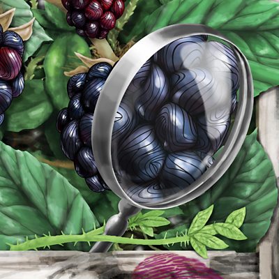 Brambles are a common reminder that nature is not just about us. The tangled confusion of spikes and tough stems tear flesh and cloth alike - the long, sinuous creepers creeping along tracks can trip those whose eyes stray from the ground. Tales from Brambly Hedge tempt children to the underworld of the bramble where homely mice families create a secure glow of domestic bliss safe from the dangers outside. Picking blackberries remains very popular and a wistful childhood memory, captured by Seamus Heaney's poem Blackberry Picking. This also echoes the dual nature of the bramble as both tormentor and giver of soft treats. Another dark side to this very common plant is the clues it gives to forensic botanists who use the bramble as an indicator of changed ground, noting if its growing pattern shows signs of disturbance, they can even detect the time the plant was dug up and recovered.The bramble is the commoner of the woodland, but says Richard Mabey, it performs an essential job in protecting young trees. Today BlackBerry is a smart phone, called after the fruit because the inventors knew that any name related to the term "email" made people's blood pressure rise, so they went for a natural, playful, happy-memory inducing name. It has now been twisted into urban slang - "going blackberry picking" now means to go out and steal phones. The humble blackberry, and there are over 650 different species, has many hidden depths.