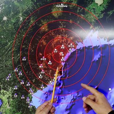 Interview with UK's UN ambassador; Greeks get "humanitarian aid"; BMW Brexit email (Photo shows seismic waves observed during a media briefing at Korea Meteorological Admin. in Seoul; credit Reuters).