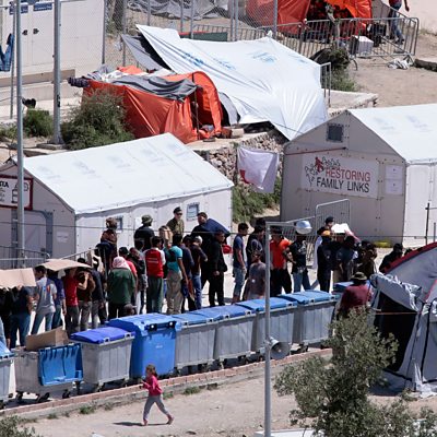 As Pope Francis prepares to visit Lesbos, an aid worker describes conditions in the Moria camp. We hear from bereaved migrants and speak to the philosopher Slavoj Zizek on Europe's failure to deal with the crisis. (Photo: Moria refugee camp, Lesbos - Milos Bicanski/Getty Images).