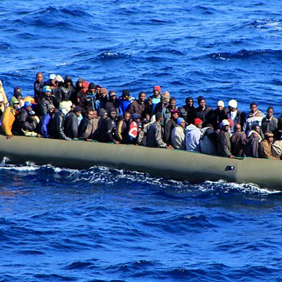 Italy tackles migrants; Carla Lane dies and the battle of Fallujah. Picture: Boat of migrants, credit: AP/Italian Navy.