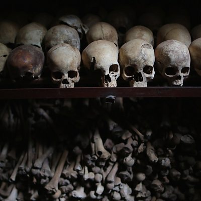 What does 'genocide' mean? How does it differ from 'crimes against humanity'? And why should there be such tension between two apparently related concepts - and between the two lawyers who devised them? Joshua Rozenberg explores the origins of international criminal law. Producer: Ben Crighton Editor: Penny Murphy (Image: The bones of thousands of genocide victims inside a crypt in Nyamata, Rwanda. Credit: Chip Somodevilla/Getty Images)