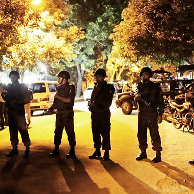 Gunmen in the Bangladeshi capital Dhaka have killed two policemen and taken a number of hostages in a café in the diplomatic quarter of the city. We get the latest. As Adnan Syed, the central character in the hit podcast Serial, is granted a retrial, we speak to his biggest supporter, Rabia Chaudhury. And BBC 6Music's Cerys Matthews on Wales' historic Euros victory. Picture: Police in Dhaka, Bangladesh. Credit: EPA/STRINGER.