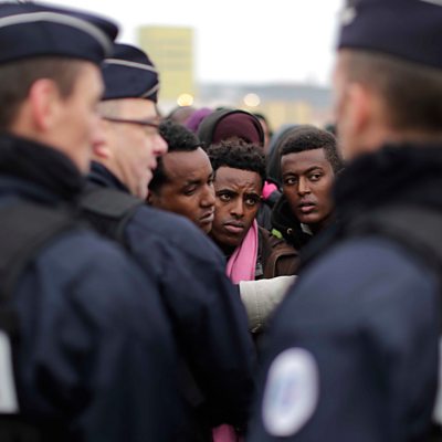 Closure of Calais camp - concerns grow for women and children; results of the Bake Off are in - what made the show such a hit? And why Evangelical Christians are standing by Trump. Photo: Calais camp migrants in front of French police officers. Credit: AP Photo/Emilio Morenatti.