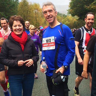 Helen Mark follows Snowdonia Marathon and meets some of the people tackling this challenging course. Starting and finishing in Llanberis, the race encircles Wales' highest mountain of Snowdon, and rises to over a thousand feet in places. Andy John, Bishop of Bangor is taking on the Marathon for the third time, and he describes the sensation from running the course as being lost in the landscape but found in yourself. But he's dreading the twenty-two mile mark when he'll reach the 1200ft climb at Bwlch y Groes or "gap of the cross", before descending back into Llanberis for the finish. Helen stops at the ten-mile mark to meet Arwyn Owen at Hafod y Llan farm to find out how Hydro-Electric Power is the new cash crop in this rugged environment. She also meets Phil Owen at Llechwedd Caverns to discover how the area became the slate-mining capital of the world. Both Phil's Father and Grandfather worked in the mine, but Phil became a musician and serenades Helen on his ukulele, three hundred feet below the surface. Helen hands out water and energy gels with volunteers from the Snowdonia Society at the halfway point in Beddgelert and speaks to Margaret Thomas about Esme Kirby, the remarkable woman who set-up the organisation, before returning to Llanberis to greet a weary Andy John as he's crosses the finishing line.