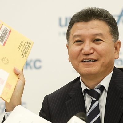 The bizarre and extraordinary story of Kirsan Ilyumzhinov, the eccentric Russian tycoon and president of FIDE, the international chess governing body. His twenty years in office have been dogged by allegations of corruption and vote-rigging and he’s recently been banned from entering the United States by the US Treasury for his alleged involvement in assisting the Assad regime in Syria. It’s prevented him from presiding over this month’s World Chess Championships in New York. For Assignment Tim Whewell reports from Moscow and New York on the deeply politicised game of chess and asks if it’s finally checkmate for the king of chess. Dina Newman producing. Photo: Kirsan Ilyumzhinov with the letter from the US Treasury informing him why he had been placed under US sanctions. Credit: K.Ilyumzhinov’s archive