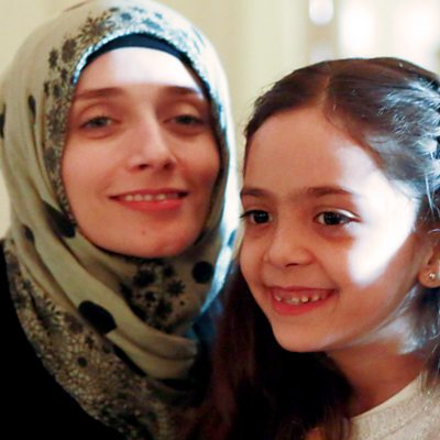 A seven year old girl, famous for her tweets, tells the BBC about her life in Aleppo. Picture: Bana and her mother, Credit AFP.