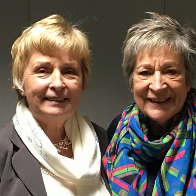Beti George yn sgwrsio â Prydwen Elfed-Owens. Beti George chats to Prydwen Elfed-Owens.