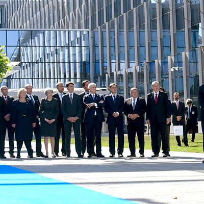 President Trump tells Nato leaders they must honour their financial obligations to the military alliance; some described his tone as lecturing. We also have the latest on the investigation into the Manchester bombing, and as campaigning in the general election resumes, we discuss what effect Monday's attack may have on the vote. (Picture: Nato Leaders in Brussels listen to Donald Trump; Credit: CHRISTOPHE LICOPPE/AFP/Getty Images).