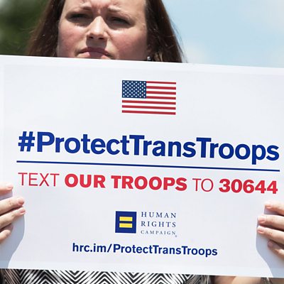 We talk to two female US soldiers - a former Marine who supports the ban and a trans infantry soldier currently serving in the army. We have a story of a German teenager who had runaway to join IS - we speak to an Iraqi journalist who met her. And we report from Plymouth, where manufacturing is booming but where there are mixed feelings about the consequences of Brexit. (Picture: Democratic lawmakers and LGBT community members react to Trump" transgender military ban Credit: EPA).