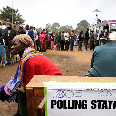 We report from Nairobi where we spend the day among the voters and the queues. And we talk to a young activist about the future of the country. President Trump says North Korea will be met with "fire and fury" if it threatens the United States. Is it time to rethink the way we deal with refugees? We hear from Denmark and discuss ways to transform the refugee system. Is there anything Venezuela's neighbours could do to stop the violence? We hear from Argentina's ambassador to the UK. And we remember Godzilla and the man who was the monster. (Picture: Kenyan voters at a polling station in the Kibera slum, Nairobi Credit: EPA).