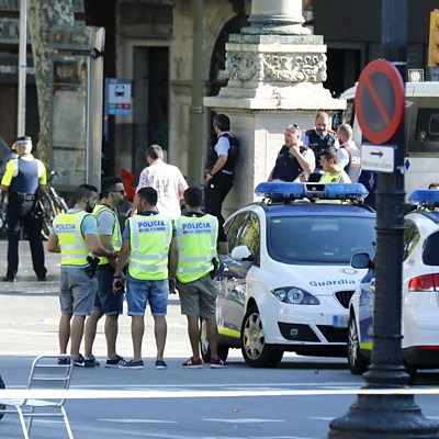 Thirteen people are dead, more than 100 injured A van was driven into pedestrians in the busy Las Ramblas area Two people have been arrested - but neither of them is the driver The Islamic State group says it was behind the attack (picture: A van crashes into pedestrians in Barcelona; credit - EPA/Andreu Dalmau).