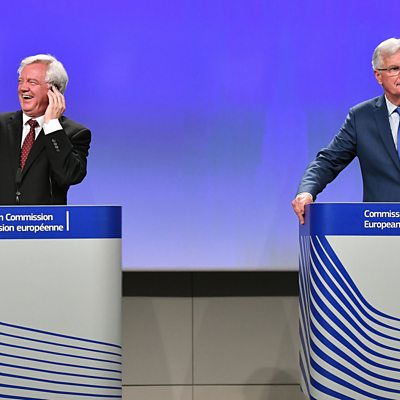 As Brexit talks end with "no decisive progress" according to the EU Brexit negotiator Michel Barnier, we ask Italy's Europe minister why the EU won't budge on talking about trade. The French Prime Minister has announced new proposals to reform France's labour market; we speak to the far left France Insoumise party about plans for more strikes. And what can victims of storm Katrina teach victims of storm Harvey? A Pulitzer prize winning journalist from New Orleans pens a letter to the people of Houston. (Photo: David Davis and Michel Barnier. Copyright: GETTY IMAGES).