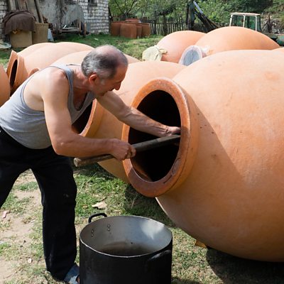 Dan Saladino travels into the Caucasus in search of "zero compromise" natural wine makers. He finds them in Georgia, thought to be the birthplace of wine, and home of the qvevri.