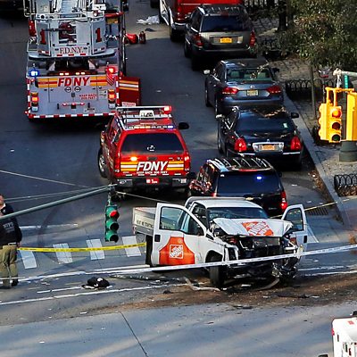 Man deliberately drives truck into cyclists and pedestrians in lower Manhattan Spain's top criminal court summons ousted Catalan leader to appear in person for questioning. Asylum seekers barricade themselves inside detention centre on Papua New Guinea, to prevent its closure Hastings Pier wins top architectural award, the Stirling Prize (photo: Emergency crews at the scene of a truck that hit people on a pedestrian and cycle path in New York; credit - Reuters/Andrew Kelly).